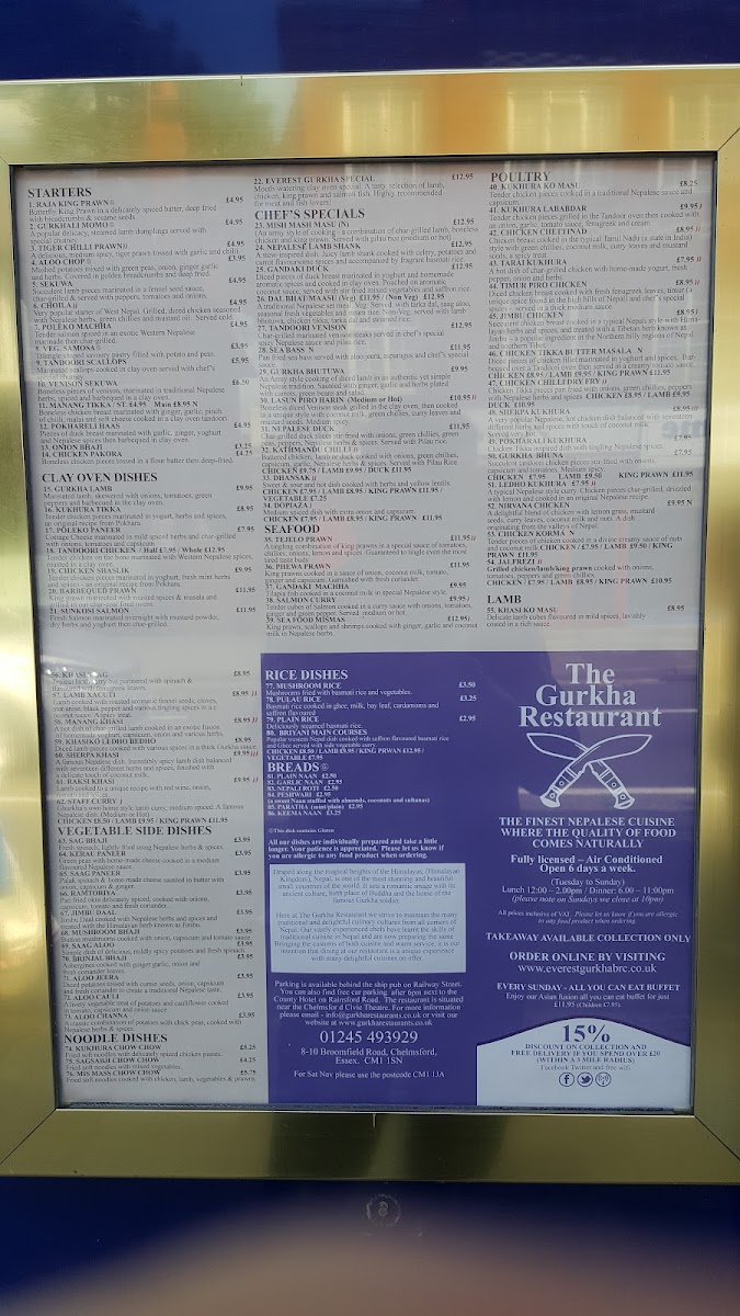 The Gurkha Restaurant Menu